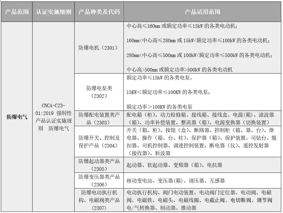 市場監(jiān)管總局在發(fā)布將防爆電氣轉(zhuǎn)為3C認(rèn)證公告的同時,也發(fā)布了一份產(chǎn)品目錄,明確規(guī)定了屬于3C認(rèn)證范疇的防爆電氣產(chǎn)品。